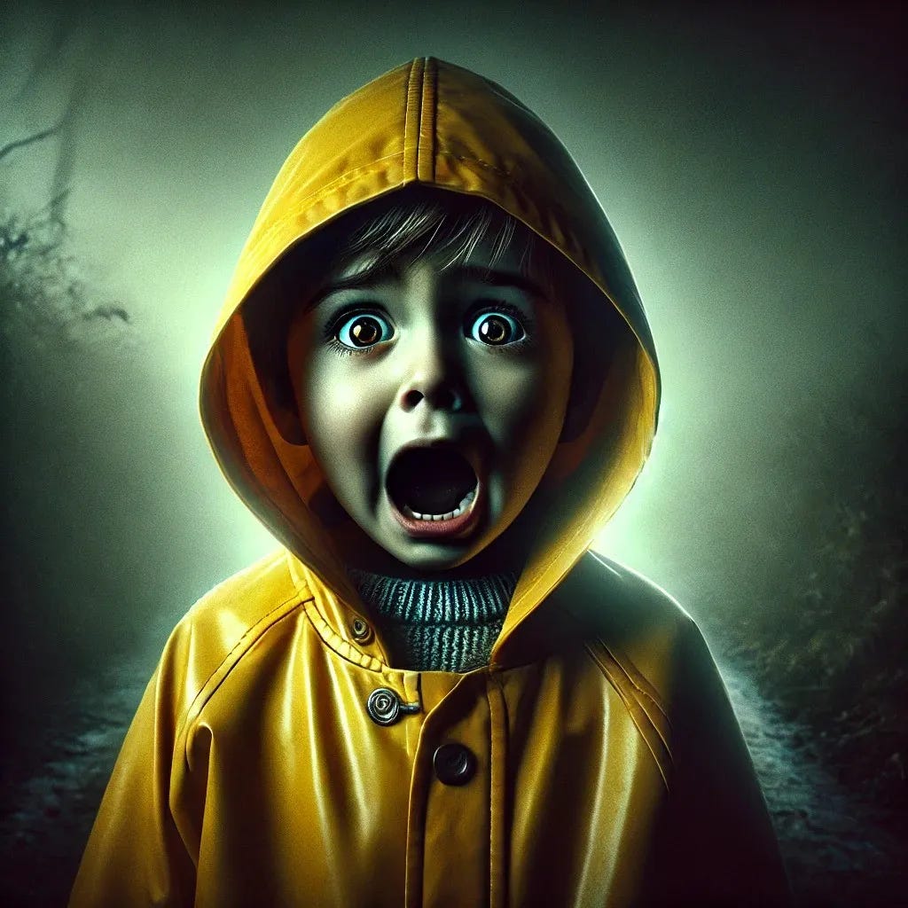 Johnny giggled as he dashed down the country lane, his yellow raincoat flapping behind him. Gravel crunched beneath his boots, the rhythm breaking the eerie silence of the empty road. He didn’t hear the whispering voices, but they heard him.